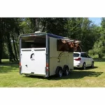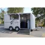 Pour 3 chevaux avec chargement en diagonale, très spacieux et rembourré.